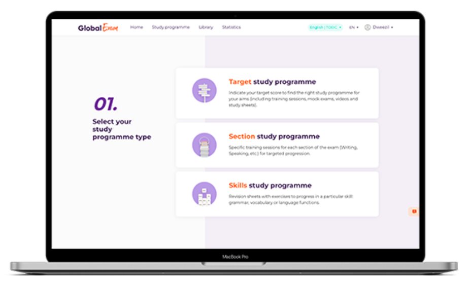 GlobalExam 提供的不只是單純題庫資源,而是完整的學習方案,讓所有的語言學習者能藉由線上平台所